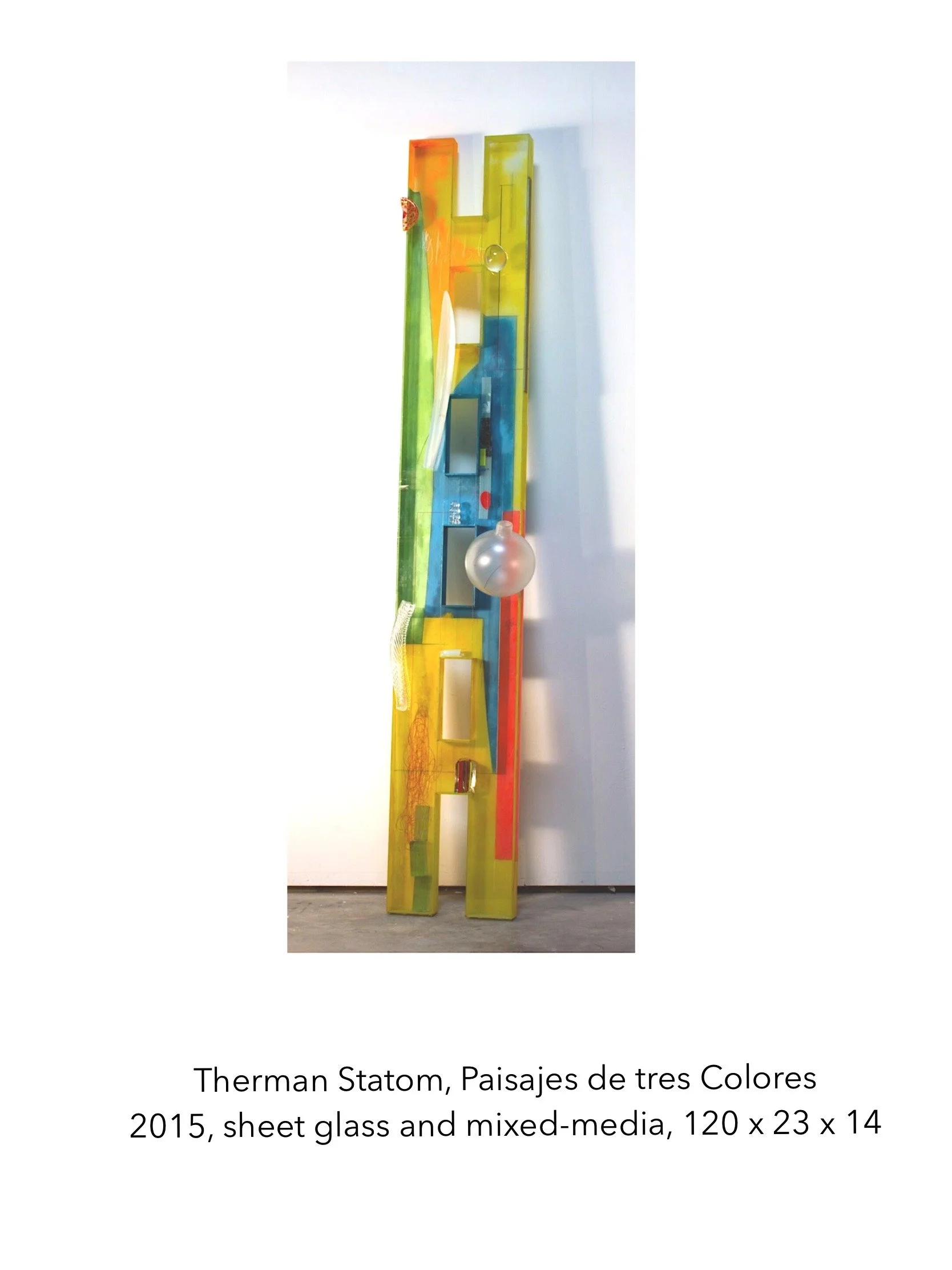 Therman Statom, sculptor, glass artist, and painter – is most notably known as a pioneer of the contemporary glass movement for his life-size glass ladders, chairs, tables, constructed box-like paintings, and small-scale houses; all created through the technique of gluing glass plates together. Sandblasted surfaces become a canvas for spontaneous vibrant colors and line work, which take nuances from Abstract Expressionism and concepts of Minimalism, while simultaneously incorporating a twist by using blown-glass elements and found objects.